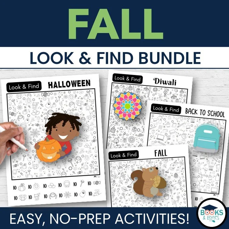 The Look and Find Fall Bundle includes Fall, Back-to-School, Halloween and Diwali.