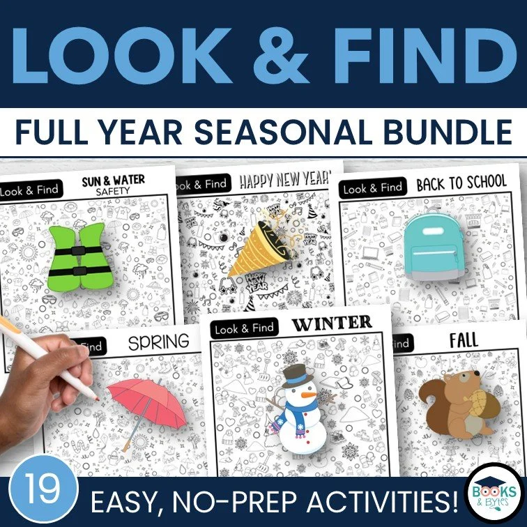 I created a SEASONAL BUNDLE with all of the Look & Find activities! It includes 19 activities for holidays, celebrations, and seasonal topics for the whole year.